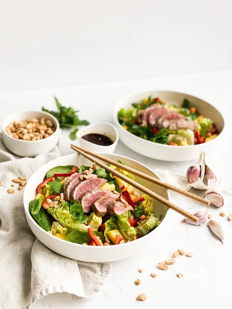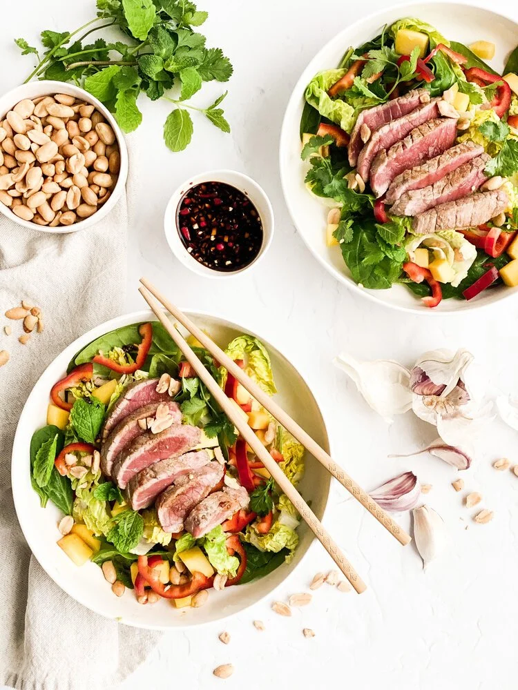 Voor dit recept ging ik aan de slag met mijn twee grote favorieten: koriander en munt! Deze Thaise biefstuk salade is heerlijk licht en fris. De oosterse toets maakt er een heel apart gerechtje van. En wat zo leuk is...: het is supermakkelijk om te maken! Zo veel redenen om je partner of gezin ermee te verrassen.